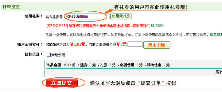 在本站领取或通过可得网活动获得优惠券码后,通过本站链接到可得网站购物进行下单,下单进行到结算页面时,在结算页面的左下角输入您的优惠券码即可获得立减优惠。