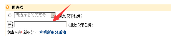 4.在提示填入优惠券号码的框内,粘贴优惠券号码。