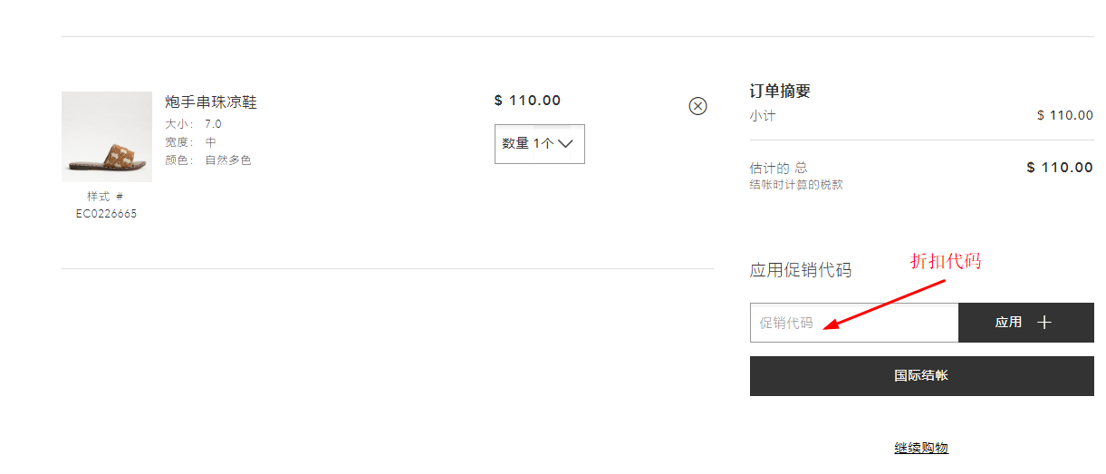 4.在提示填入优惠券号码的框内,粘贴优惠券号码。