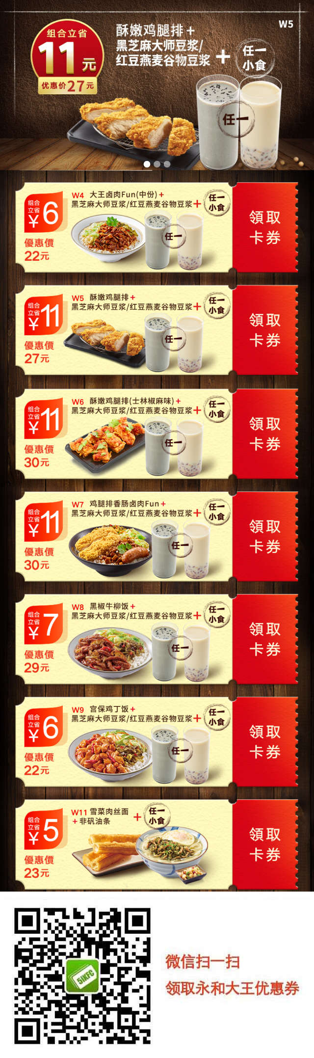 永和大王优惠券套餐2020年5月卡券领取,面、饭、鸡排套餐22元起