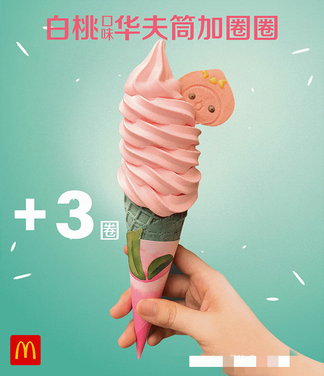麦当劳白桃华夫筒加圈圈,凭优惠券甜筒+1/+2/+3圈