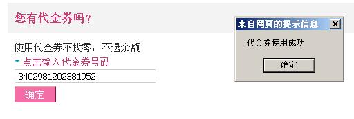 4.在提示填入优惠券号码的框内,粘贴优惠券号码。