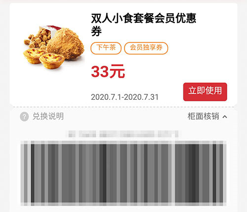 优 惠 额:凭肯德基优惠券33元