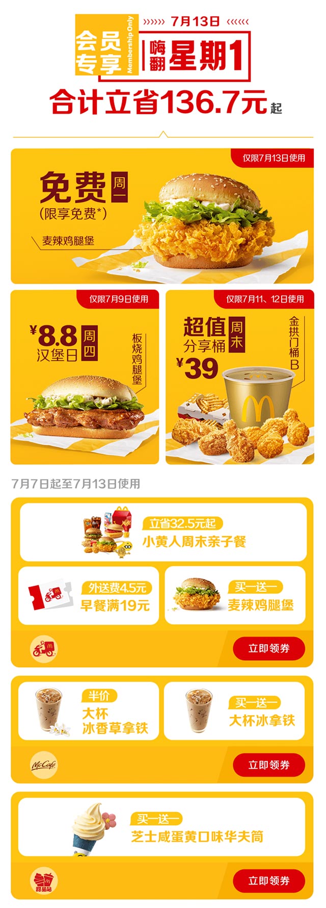 麦当劳早餐“折”学,2020年7月全天早餐日,5/7/9元超值菜单