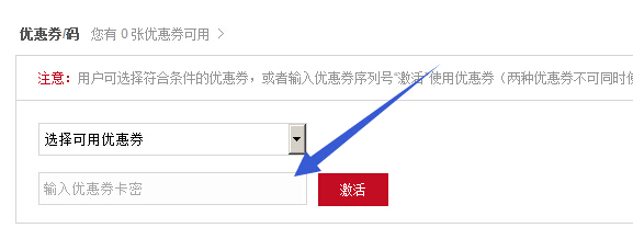4.在提示填入优惠券号码的框内,粘贴优惠券号码。