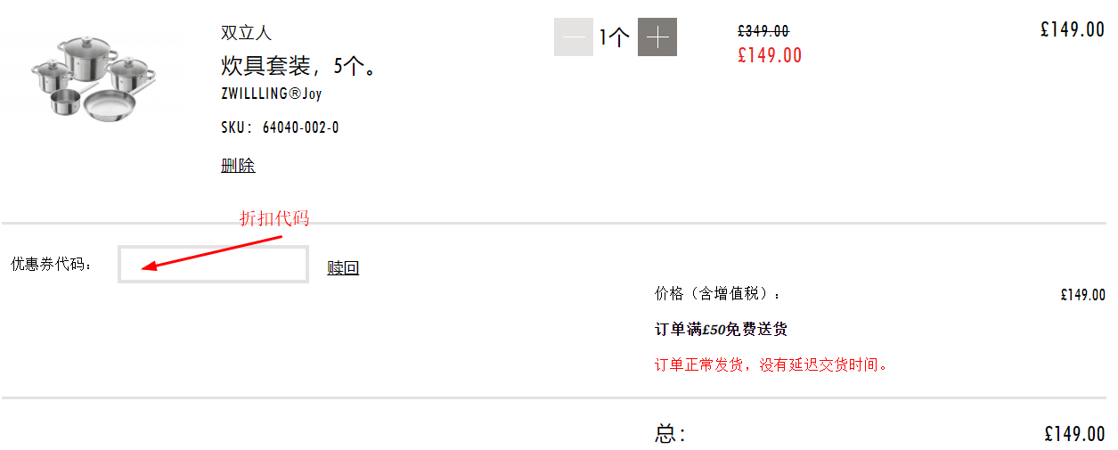 zwilling优惠码,zwilling双立人官网满£50免邮优惠代码
