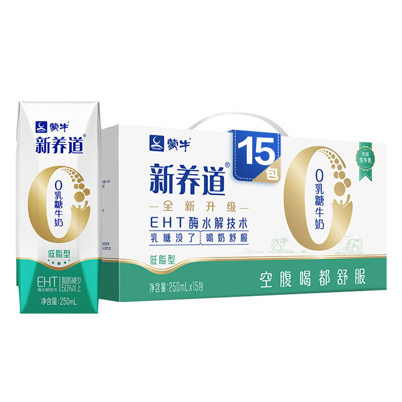 蒙牛 新养道 零乳糖低脂型牛奶(无乳糖好吸收)250ml*15 礼盒装1665件已付款抢! -