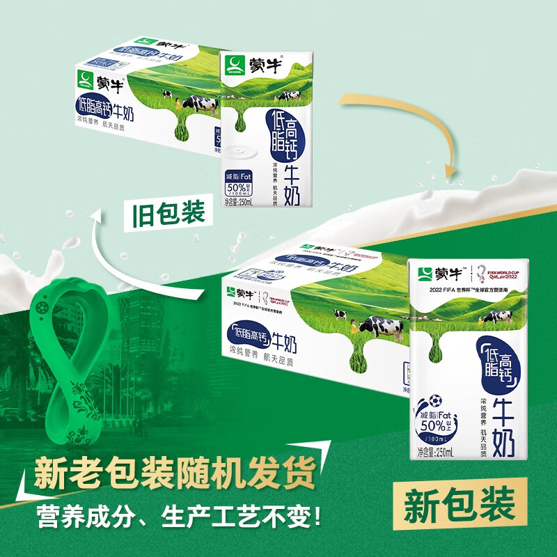 蒙牛 低脂高钙牛奶整箱【礼盒装】 低脂高钙 250ml*24盒*2箱9700件已付款抢! -