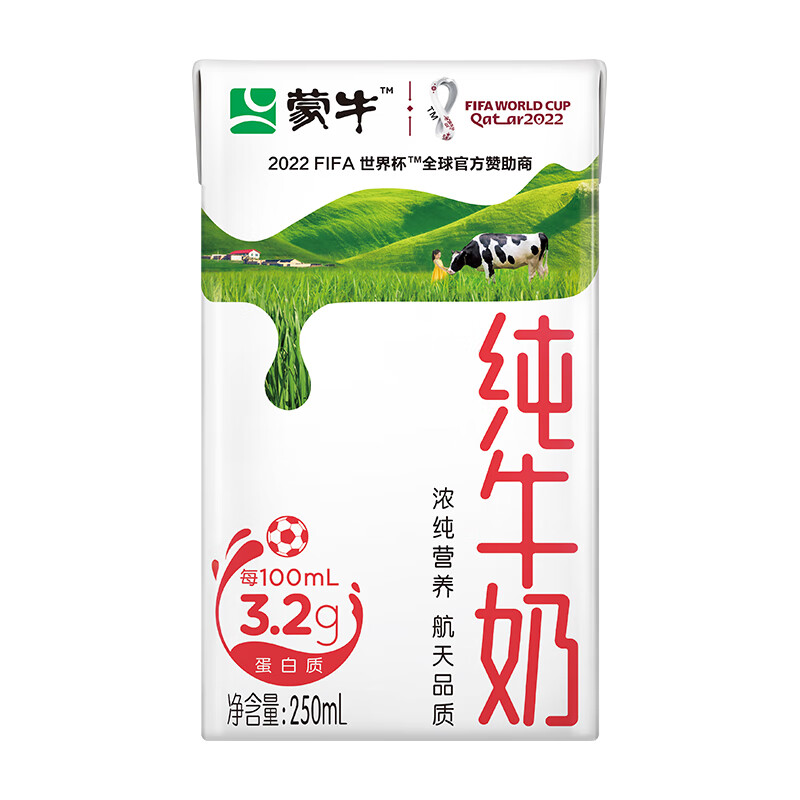 蒙牛 纯牛奶 250ml×16 礼盒装 世界杯定制装(新老包装随机发货)3595件已付款抢! -