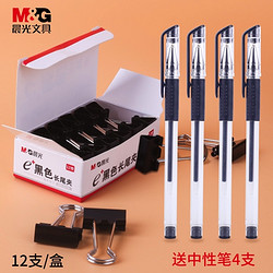 M&G 晨光 19mm黑色长尾夹12枚+中性笔4支1.9元包邮7263件已付款抢! -