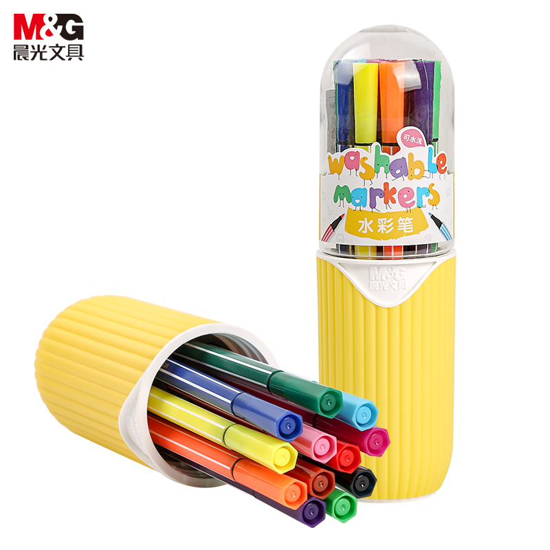 晨光(M&G)文具12色六角杆水彩笔 儿童可水洗大容量创作画笔 PP盒装涂鸦画笔 12支/筒ACP901Q5考试用品5963件已付款抢! -