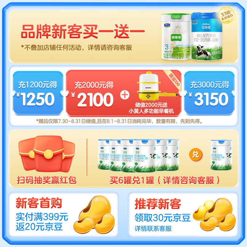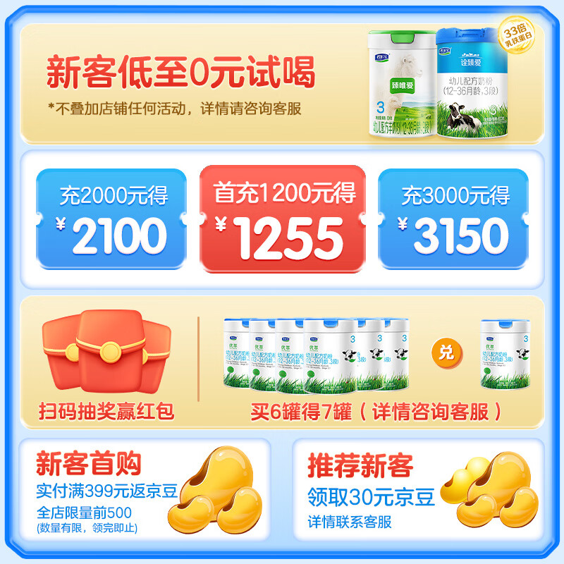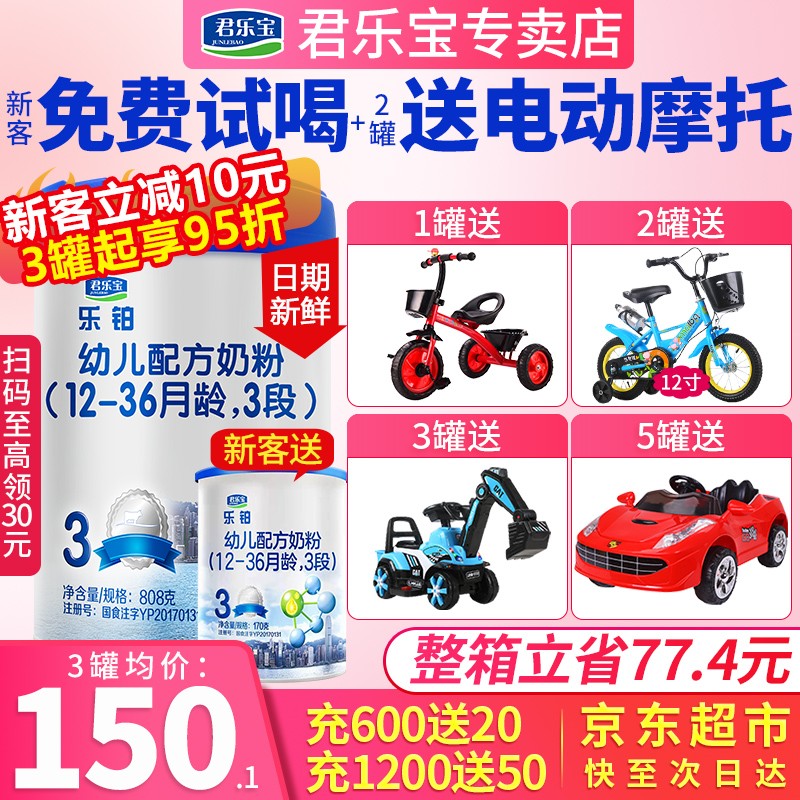 【买1送1】君乐宝旗帜奶粉益佳3段幼儿益生菌配方三段蓝罐800g 12-36个月宝宝适用 4罐买1送18713件已付款抢! -
