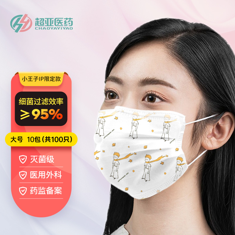 超亚 小王子 一次性医用外科口罩 50只9.9元 23.9元3580件已付款抢! -