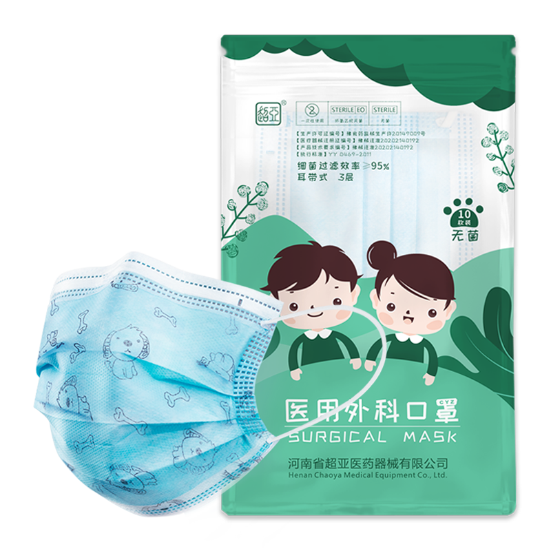 超亚医用外科儿童口罩100只(每10只独立包装/袋*10)儿童灭菌型一次性口罩医用男女防细菌防粉尘三层防护4452件已付款抢! -