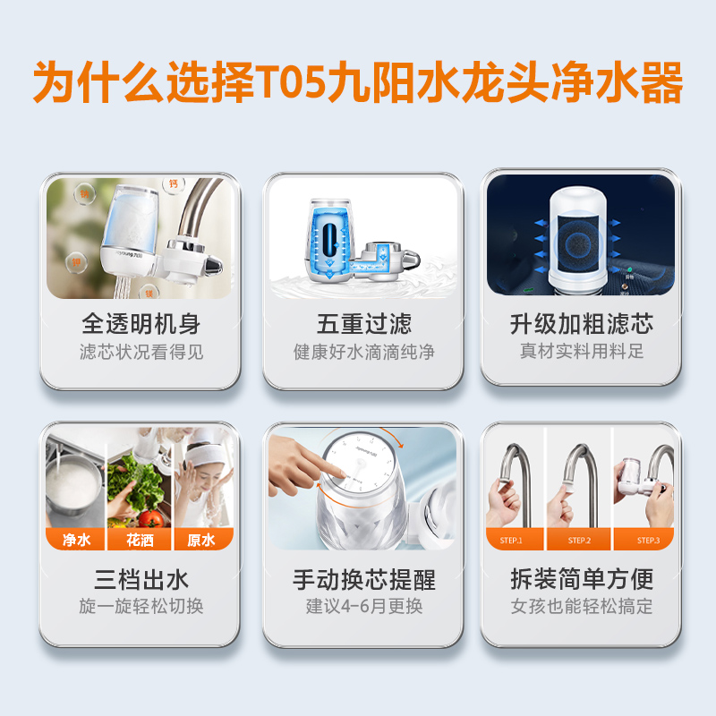 九阳 (Joyoung )净水器水龙头台式前置净水机家用厨房过滤器自来水可视化可清洗滤芯JYW-T05 1机4芯套装1777件已付款抢! -