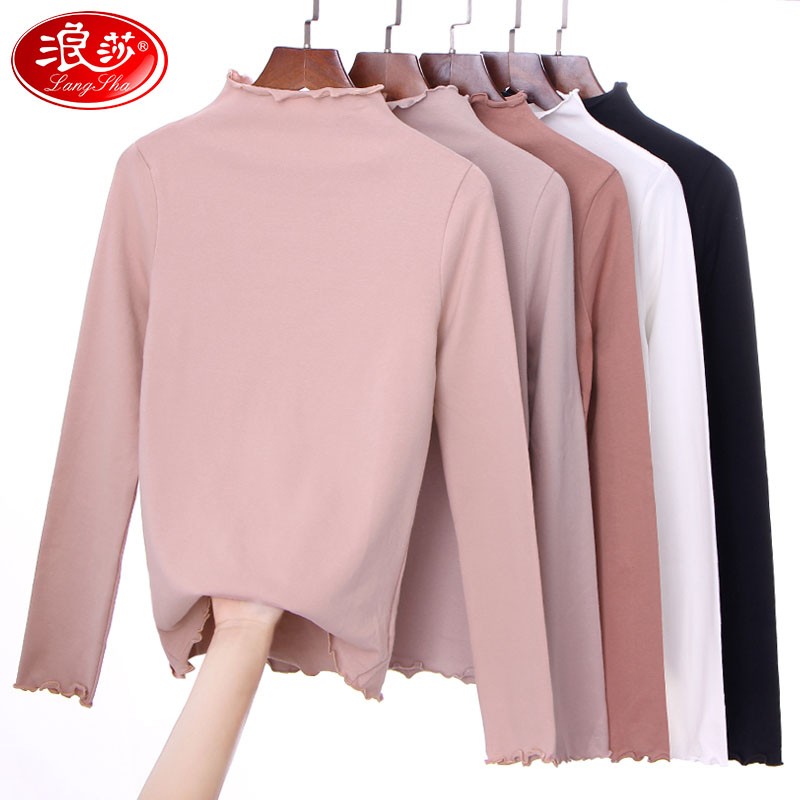 浪莎打底衫女纯色秋冬套头半高领木耳边打底国货打底衣女 黑色 L(建议80-120斤)7686件已付款抢!