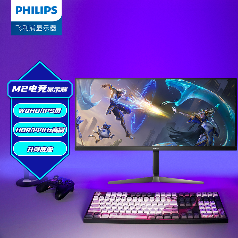 飞利浦 34英寸 WQHD IPS带鱼屏 144Hz 1ms HDR 分屏升降 96%Adobe 电竞显示器 高清直播 PS5游戏显示屏345M2R1834件已付款抢! -
