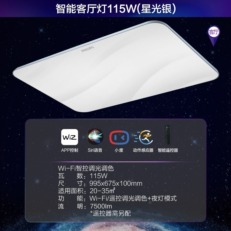 飞利浦 客厅灯LED吸顶灯北欧简约客厅灯饰 美妍智能WiFi 升级版 115W 92900252558706件已付款抢! -