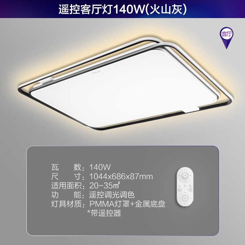 飞利浦(PHILIPS)客厅灯LED吸顶灯北欧后现代创意简约几何客厅卧室灯饰灯具 悦璃140W 92900319163171件已付款抢!