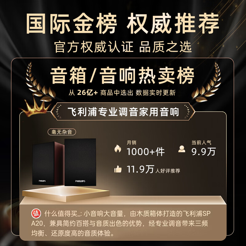 飞利浦(PHILIPS)SPA20 木质小音箱电脑音响台式usb笔记本多媒体重低音家用桌面游戏3975件已付款抢! -