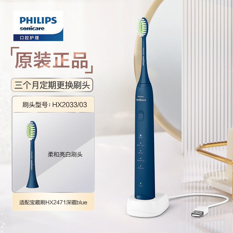 飞利浦(PHILIPS) HX2471情侣电动牙刷声波电动牙刷 HX2471 /01深藏BLUE6303件已付款抢! -