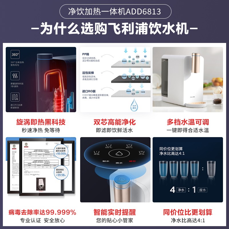 飞利浦(PHILIPS) 即热式饮水机家用桌面小型台式净饮加热一体机3秒速热 RO反渗透 母婴净饮机5658件已付款抢! -