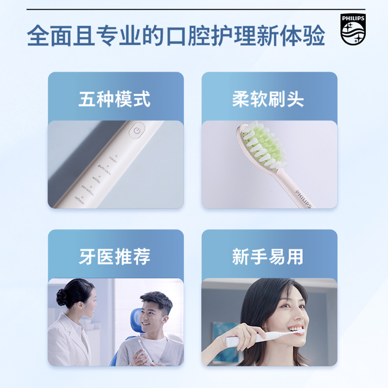 飞利浦电动牙刷成人 情侣款礼物送男友/女友 5种模式 软毛柔和亮白刷头 5效宝藏刷 深藏BLUE HX2471/015248件已付款抢! -