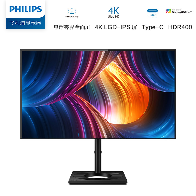 飞利浦 27英寸 LGD-IPS全面屏 4K 10bit HDR400 Type-C65W 旋转升降 专业设计 办公显示器 娱乐显示屏 279C95740件已付款抢!