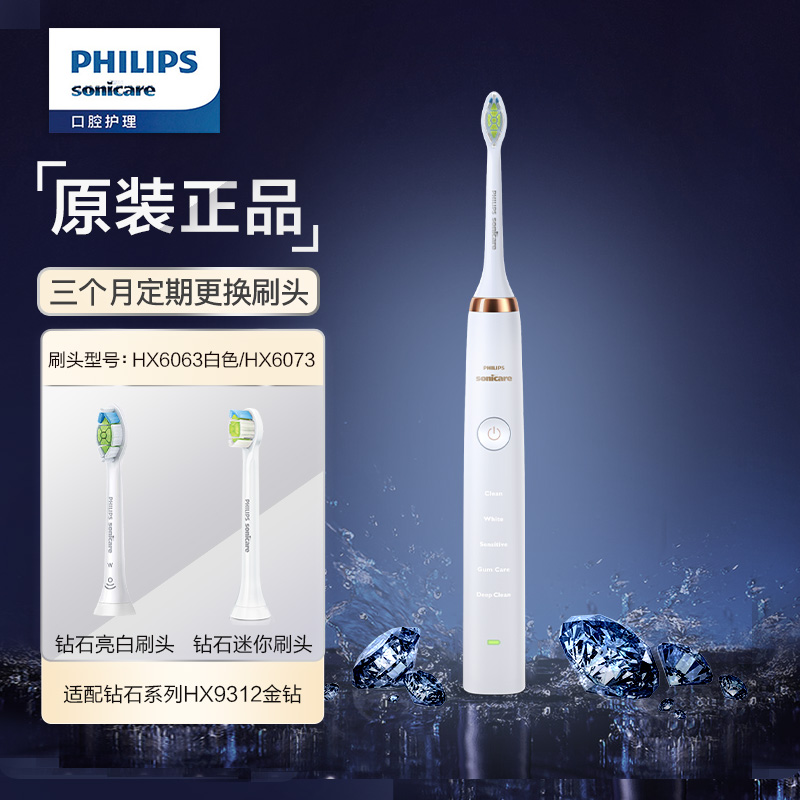 飞利浦电动牙刷成人情侣款 送礼物男/女 钻石系列 金钻 (自带刷头*2+充电旅行盒+充电玻璃杯) 白金色HX93125769件已付款抢! -