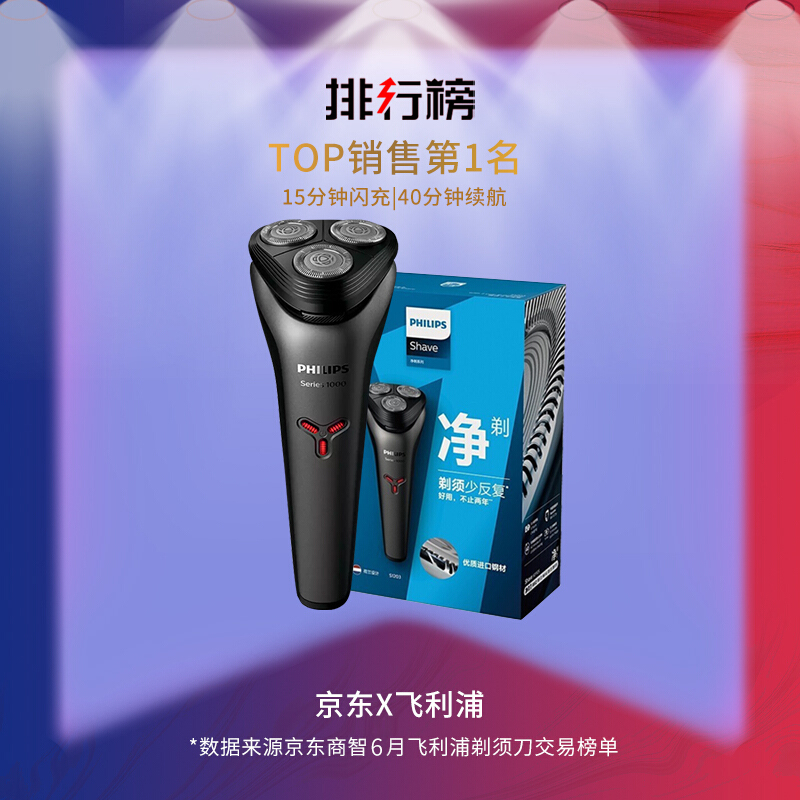 飞利浦(PHILIPS) 男士剃须刀电动 全身防水净剃胡须刀 S1203/02|高性价比款2888件已付款抢! -