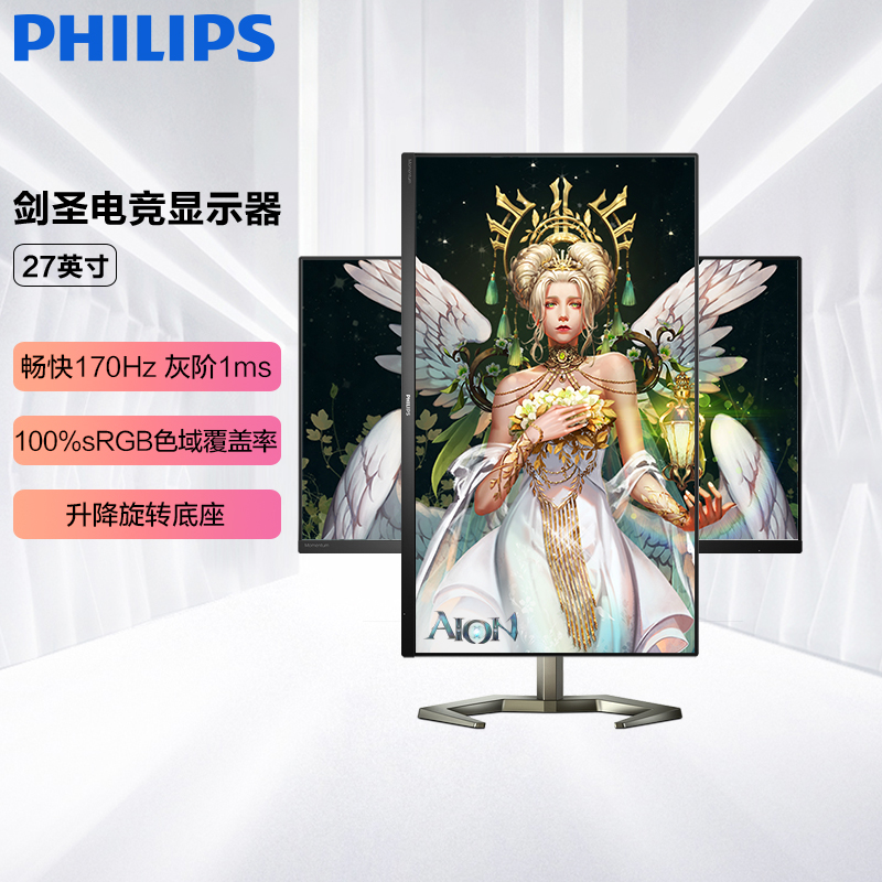飞利浦 27英寸 2K 170Hz NanoIPS屏 1ms(GtG) HDR 98%P3 旋转升降 电竞显示器 PS5游戏娱乐显示屏 27M1N5500Z2864件已付款抢! -
