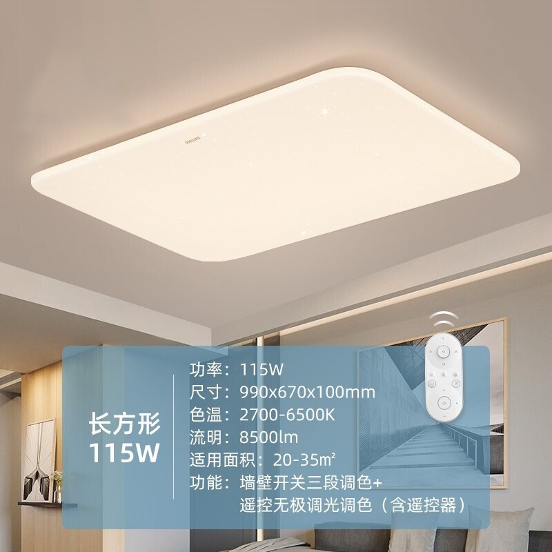 飞利浦(PHILIPS)吸顶灯客厅卧室书房灯具现代满天星简约调光调色 盈乐115W(含遥控) 92900259017144件已付款抢! -