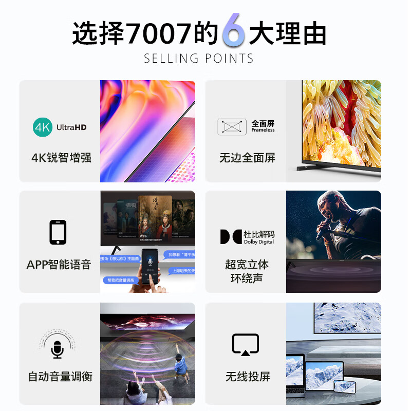飞利浦(PHILIPS) 55英寸4K超清全面屏 液晶电视 智能网络电视机 55PUF7007/T3 锐智增强 2022款3579件已付款抢! -