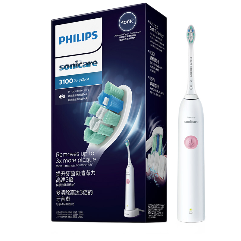 飞利浦电动牙刷成人情侣款全自动充电式 牙龈护理型 自带2支刷头 粉白色 HX3226/41(新老包装随机发货)5527件已付款抢! -