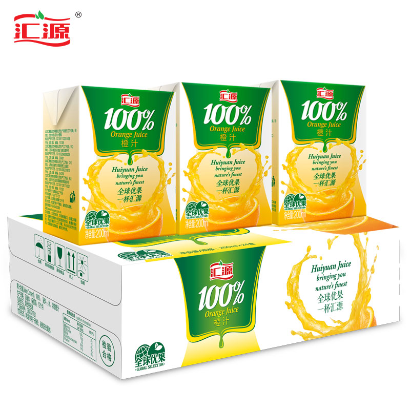 汇源果汁 100%橙汁 果汁饮料 200ml*24盒 整箱8140件已付款抢! -