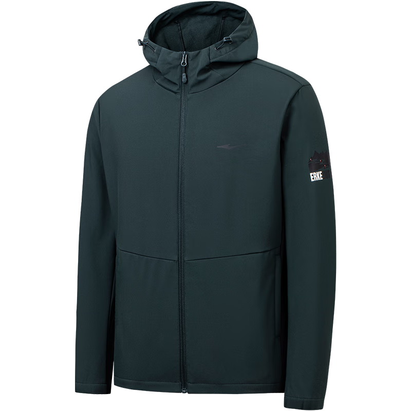 鸿星尔克(ERKE) 运动外套男秋冬新款加绒加厚防风保暖连帽拉链休闲男士夹克风衣 海藻绿 L2120件已付款抢! -