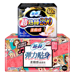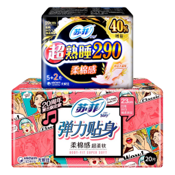 苏菲 卫生巾日夜用组合装超熟睡加长量多日用+夜用组合箱装 日用40片+夜用5片3770件已付款抢! -