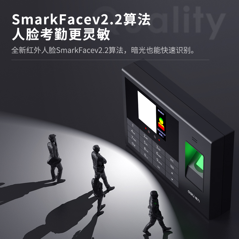 得力(deli) 考勤机 人脸指纹混合识别 人脸识别考勤打卡机 签到机 200人脸+1000枚指纹容量 37652899件已付款抢! -