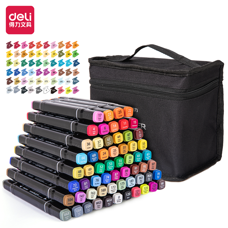 得力(deli)60色速干马克笔画画涂色套装水彩笔马克笔绘画设计HM902-60中秋礼物4751件已付款抢! -