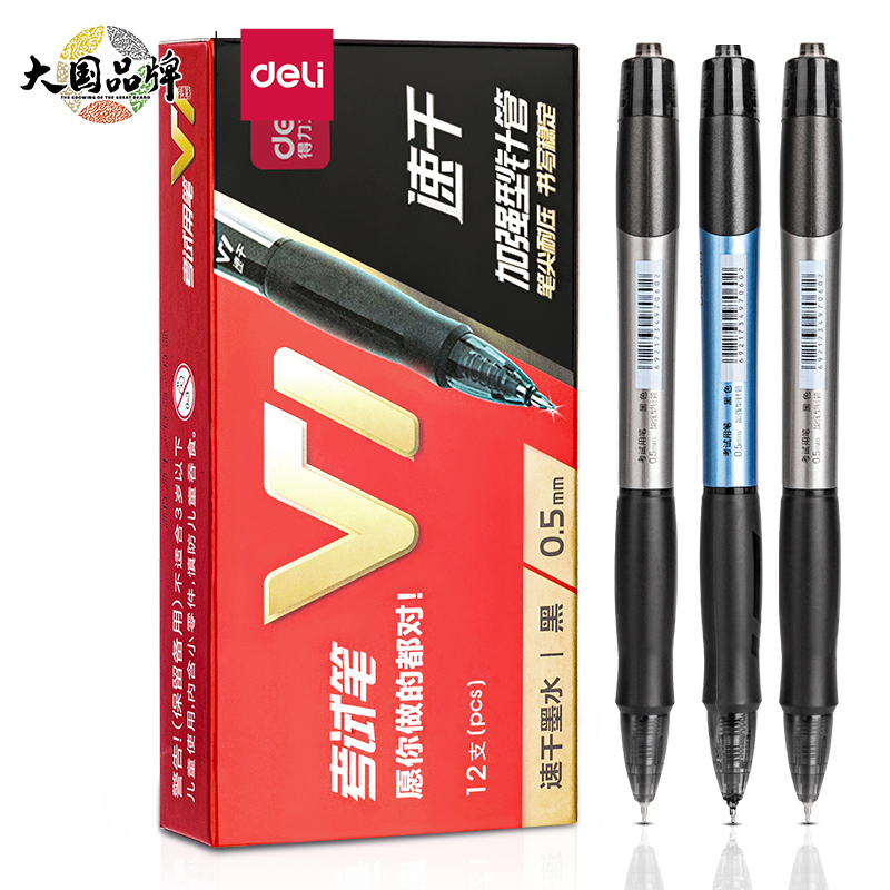 得力(deli)连中三元 0.5mm考试可用按动中性笔 ST头加强型针管速干顺滑软胶护套 笔 黑色 12支/盒 V13995件已付款抢! -