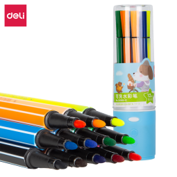 得力(deli)12色可洗水彩笔 儿童画画彩色涂色颜色笔美术画材 收纳筒33985-122043件已付款抢! -
