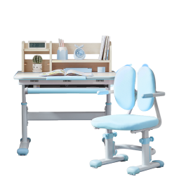 得力(deli)87006儿童学习桌椅套装 带书架可升降 楹木芯选材 80CM 蓝色1318件已付款抢! -