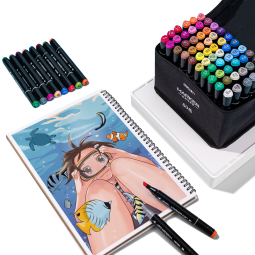 得力(deli)马克笔套装60色 双头速干学生儿童水彩笔绘画画笔生日开学礼物 便携提袋带底座33807-609284件已付款抢! -