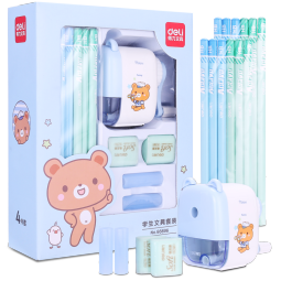 得力(deli)萌伊系列学生开学文具套装 大礼包 1-2年级铅笔+卷笔刀+橡皮+握笔器学习文具17件套 蓝色 688969883件已付款抢! -