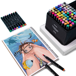 得力(deli)马克笔套装80色双头速干学生儿童水彩笔绘画画笔生日开学礼物 便携提袋带底座33807-802624件已付款抢! -