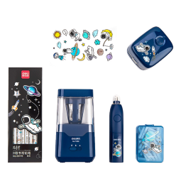 得力×中国航天 学生文具套装/开学大礼包/开学礼盒( 电动削笔机+电动橡皮擦+桌面清洁器 )一二年级689108095件已付款抢! -