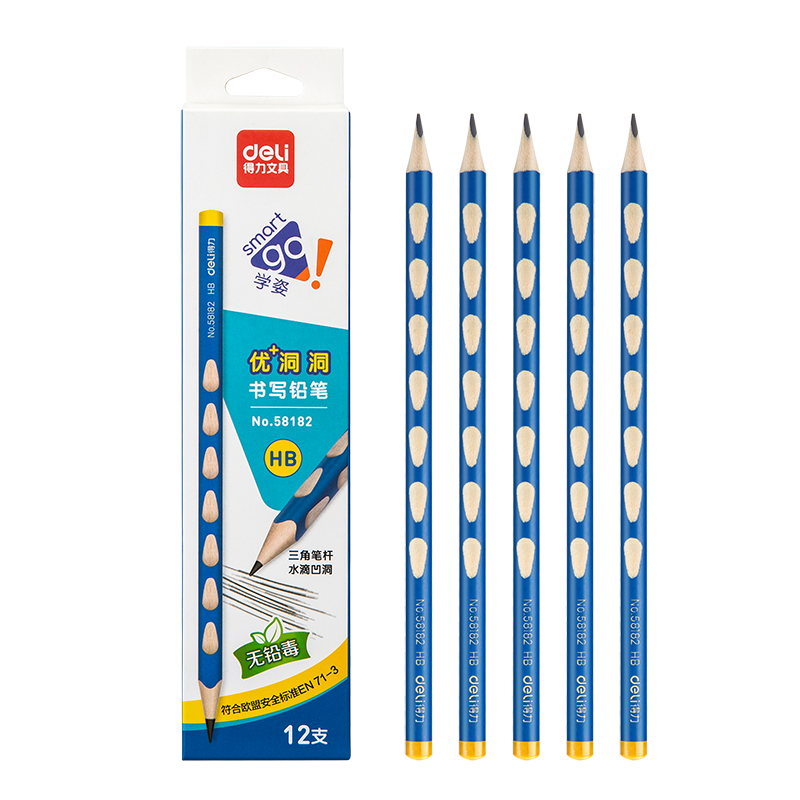得力(deli) 儿童洞洞笔 粗杆儿童/小学生练字矫正握姿铅笔 学生用品 HB12支彩盒装 581827918件已付款抢! -