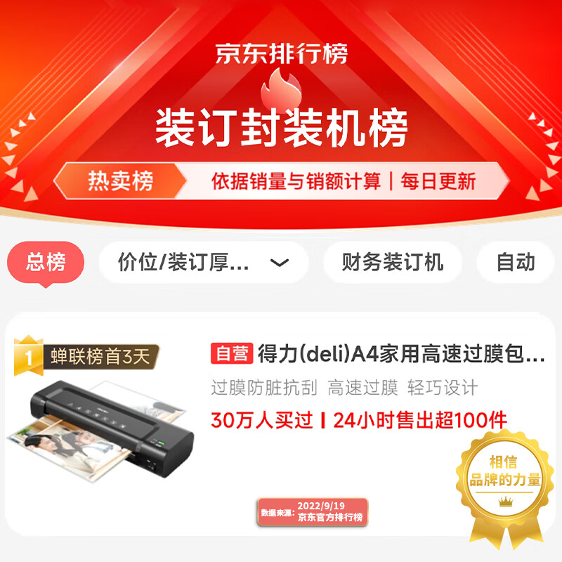 得力(deli)A4家用高速过膜包装机 过塑膜A4家用照片塑封机 过胶机菜单文件照片覆膜过塑机143758659件已付款抢! -