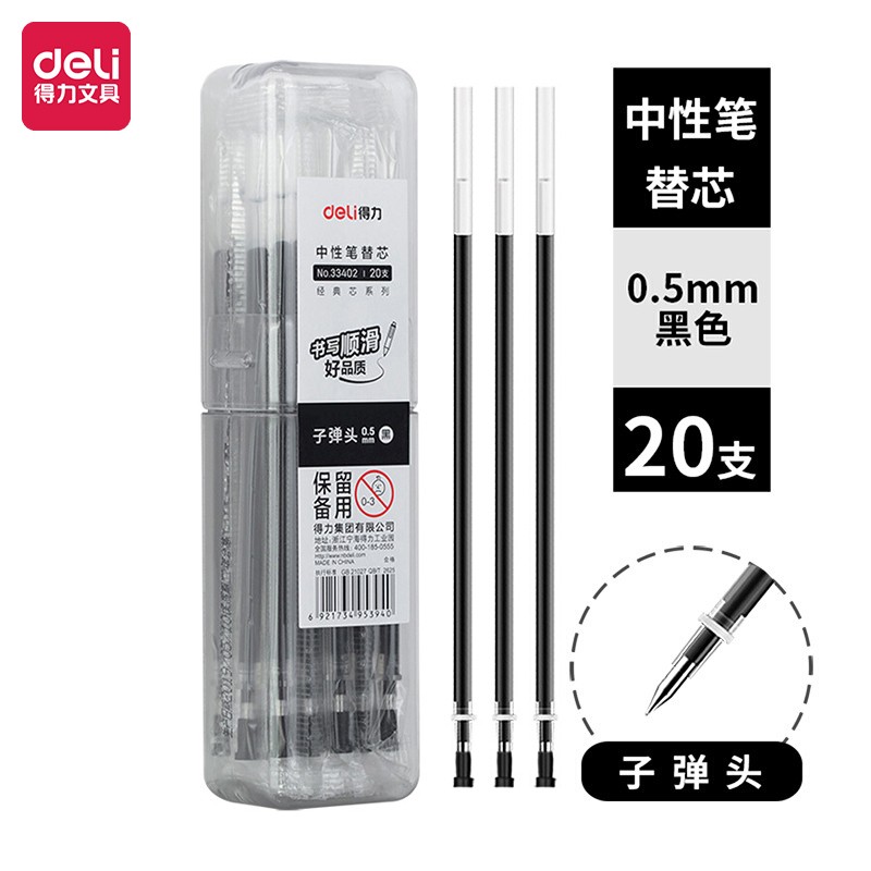 得力(deli)0.5mm中性笔芯签字笔水笔替芯 办公用品 子弹头黑色20支/桶334026398件已付款抢! -