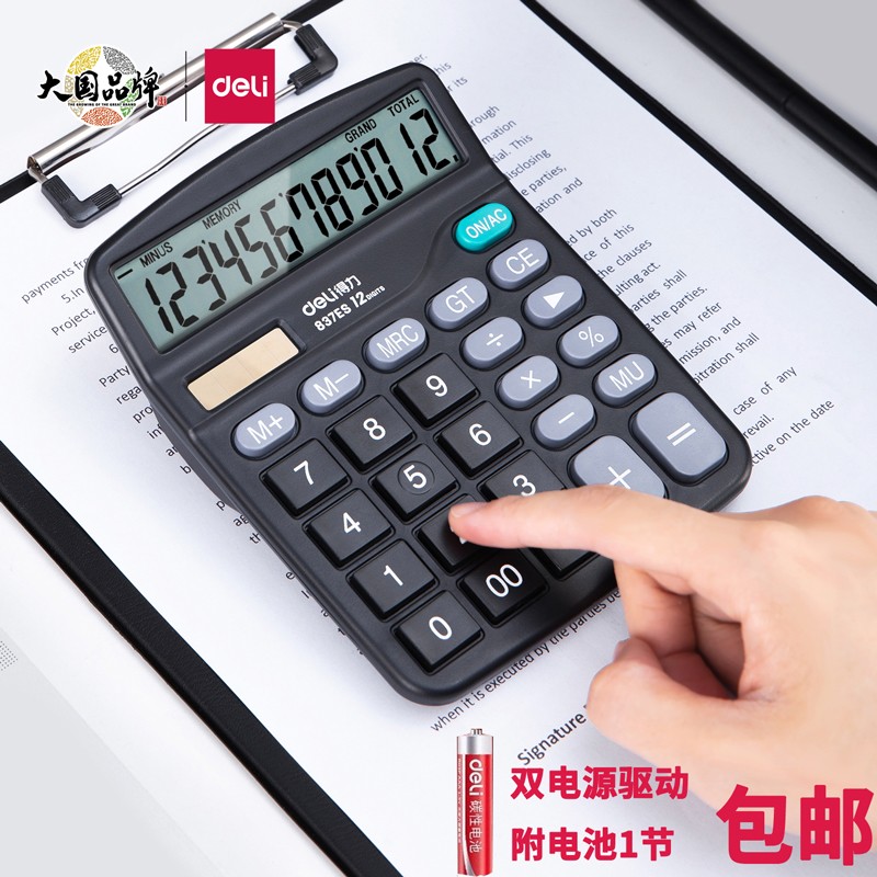 得力(deli) 双电源桌面办公计算器 12位大屏幕桌面计算机 办公文具用品 837ES7571件已付款抢! -